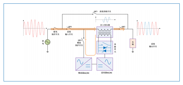 動態(tài)電壓調(diào)節(jié)器 HTAVC 由四象限整流器、逆變器、旁路單元和串聯(lián)在電網(wǎng)輸入端和負(fù)載之間的注入式變壓器組成,裝置從電網(wǎng)中獲取原始能量,無儲能元件。它可快速在線調(diào)節(jié)電壓,是解決電壓暫降電壓暫升、電壓波動、改進電能質(zhì)量的高效可靠的裝置。