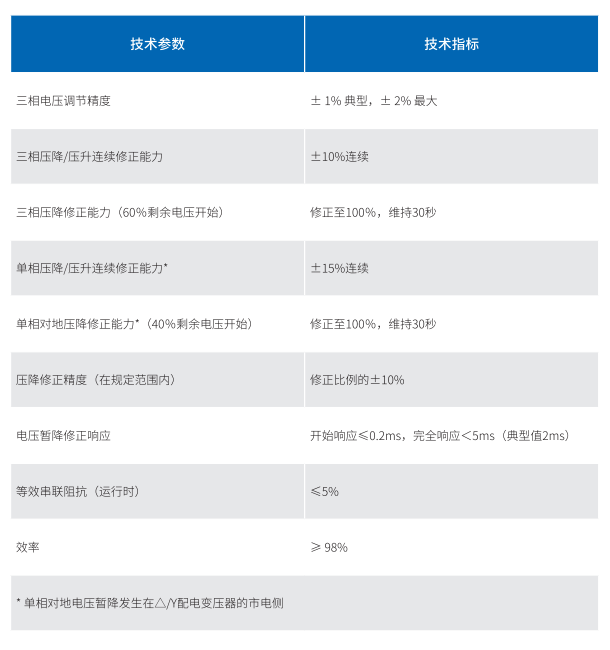 電壓暫降補償、電壓暫升補償、相角誤差修正、電壓不平衡修正、連續(xù)在線調(diào)壓、電壓波動與閃變