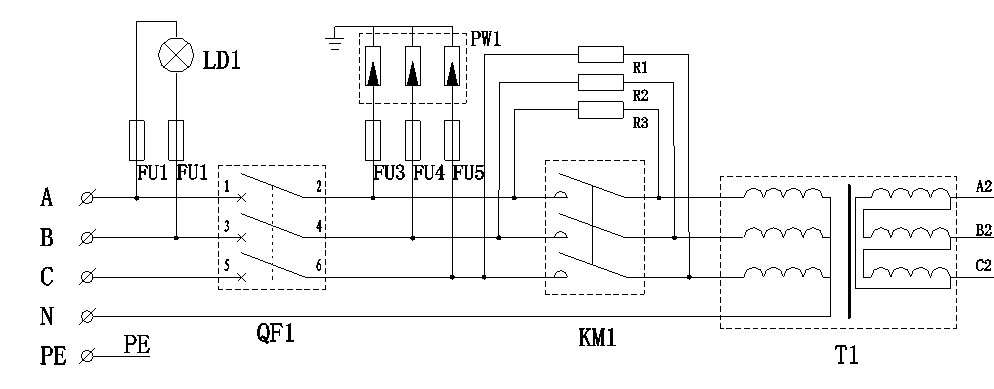 交流配電柜主要由斷路器、軟啟(大功率選配)(選配)等部隔離變壓器分組成,采用手動或自動投入方式實現(xiàn)對電源的隔離供電。