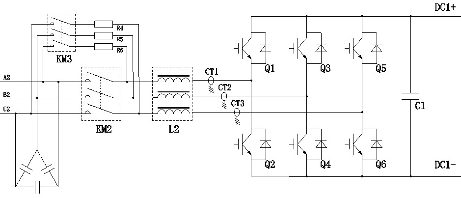 AC-DC 變換柜主要部分是 AC-DC雙向變換,采用四象限 PWM 技術(shù),能量雙向流動,功率因數(shù)高達(dá)0.99,并網(wǎng)諧波污染小。